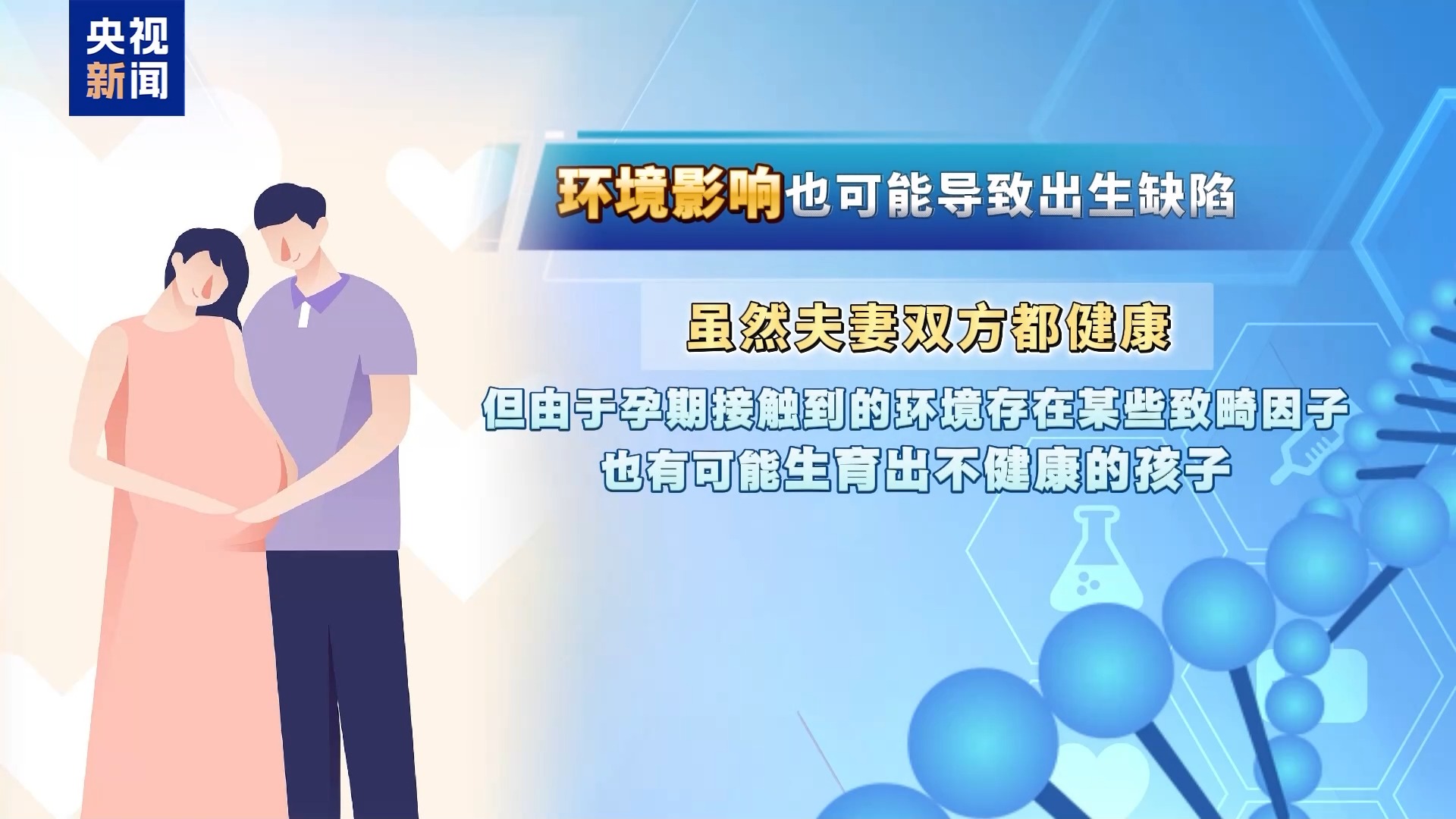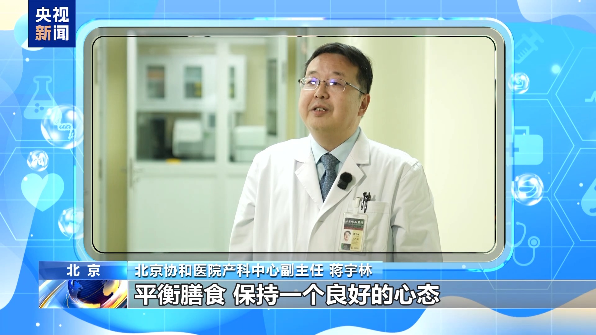 北京协和医院产科中心副主任 蒋宇林:在孕前应该针对夫妇都做一些身体检查,看看有没有一些慢性疾病。怀孕以后,早孕期叶酸的补摄入,可以有效降低常见的出生缺陷,比如神经管畸形、先天性心脏病的发生。之后在整个孕期定时产检非常重要,同时在孕期要做好营养体重的控制,平衡膳食,保持一个良好的心态。
