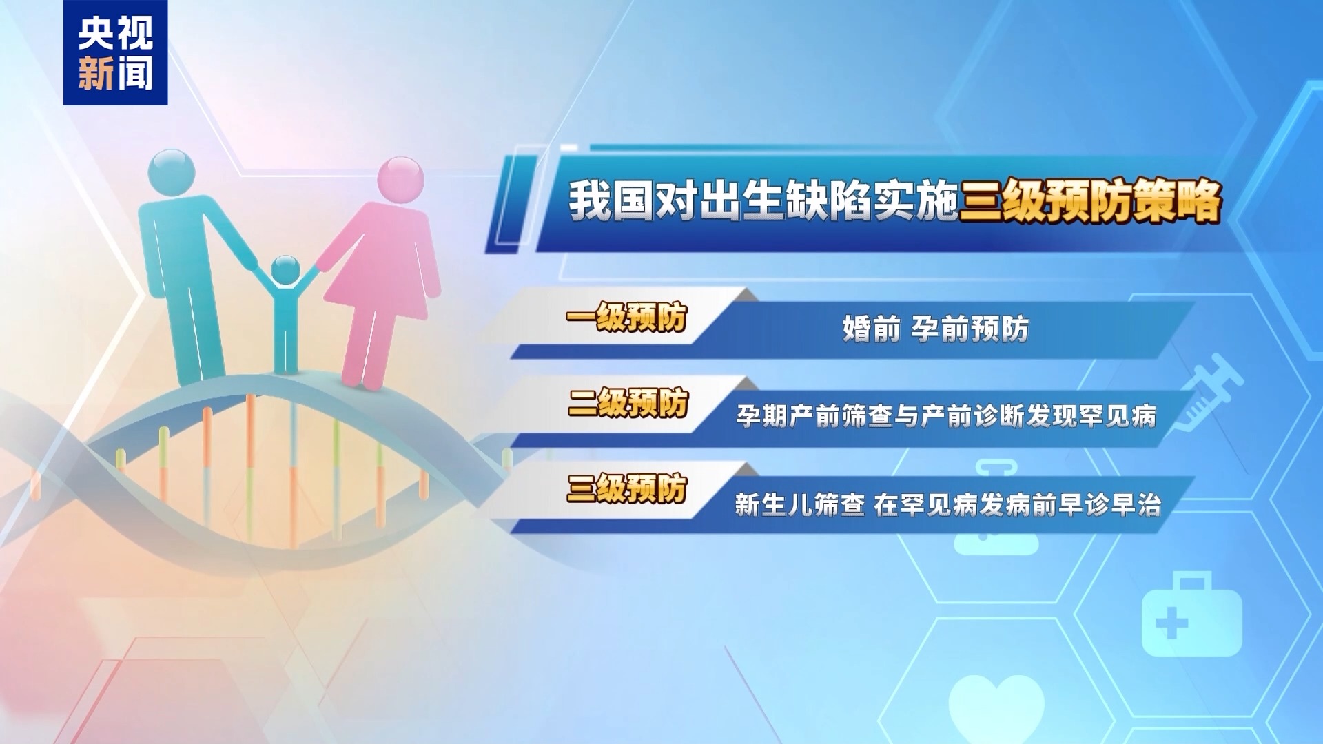 我国对出生缺陷实施三级预防策略,最大限度减少罕见病患儿出生。